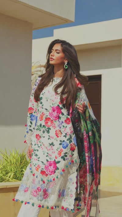 Where past and present meet in style with this digitally printed embroidered three-piece from the latest unstitched Summer Collection.